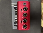 The Ge overdrive combines the softer response of germanium diodes with a parallel path that blends in the dry signal as the Drive is lowered. At higher gains the lower-mid range frequencies are emphasized to create a tight, thick response. This overdrive really fattens up single coil pickups, and responds with a bold push when paired with humbuckers.